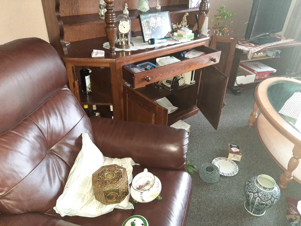 Donderdagochtend werd ontdekt dat de gordijnen dicht waren en dat de voordeur was opengebroken. Volgens de nabestaanden hebben de inbrekers veel moeite gedaan om binnen te komen. "Elk raam en elke deur heeft schade."