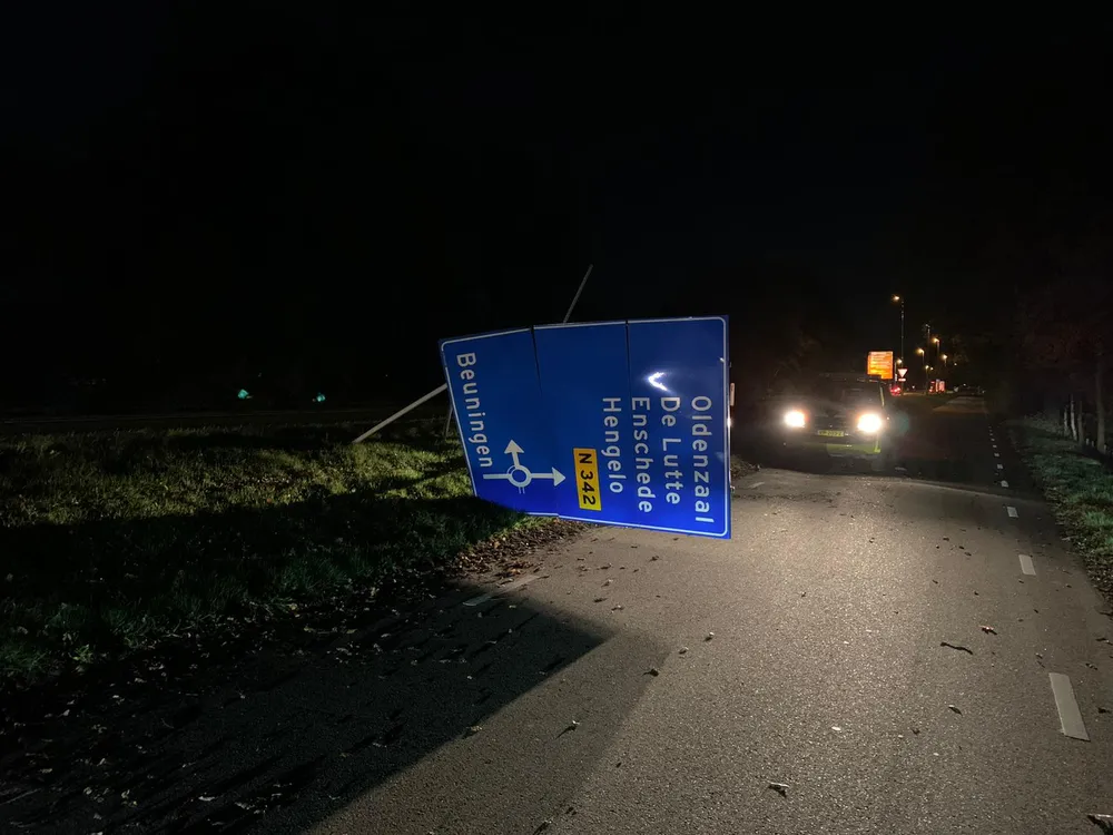 Een automobilist heeft dinsdagavond door onbekende oorzaak op de Denekamperstraat N342, net in Beuningen, een verkeersbord geramd.