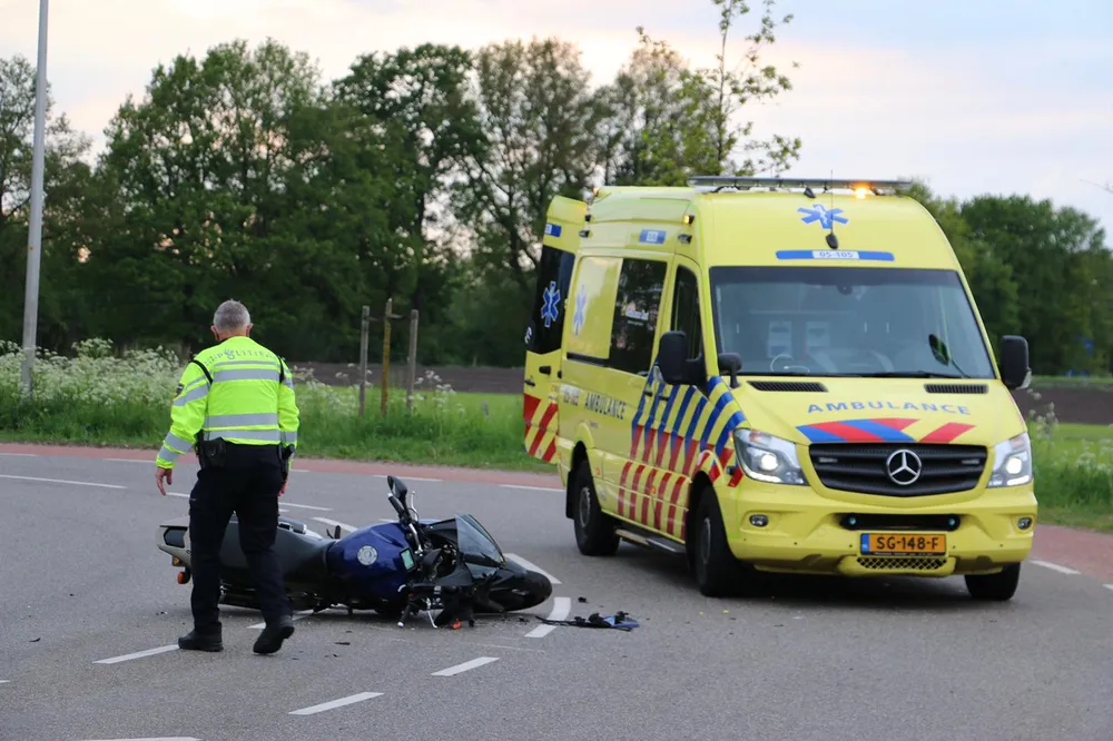 De motorrijder is onder andere met beenletsel overgebracht naar het ziekenhuis.