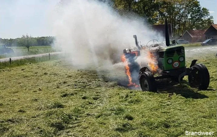 Aan de Volterdijk in Beuningen is maandagmiddag een tractor uitgebrand.