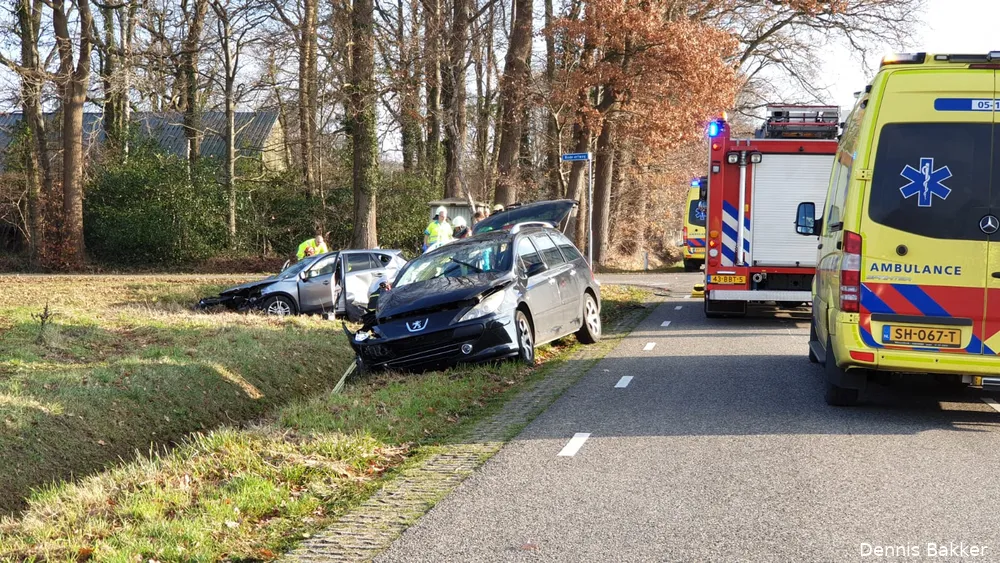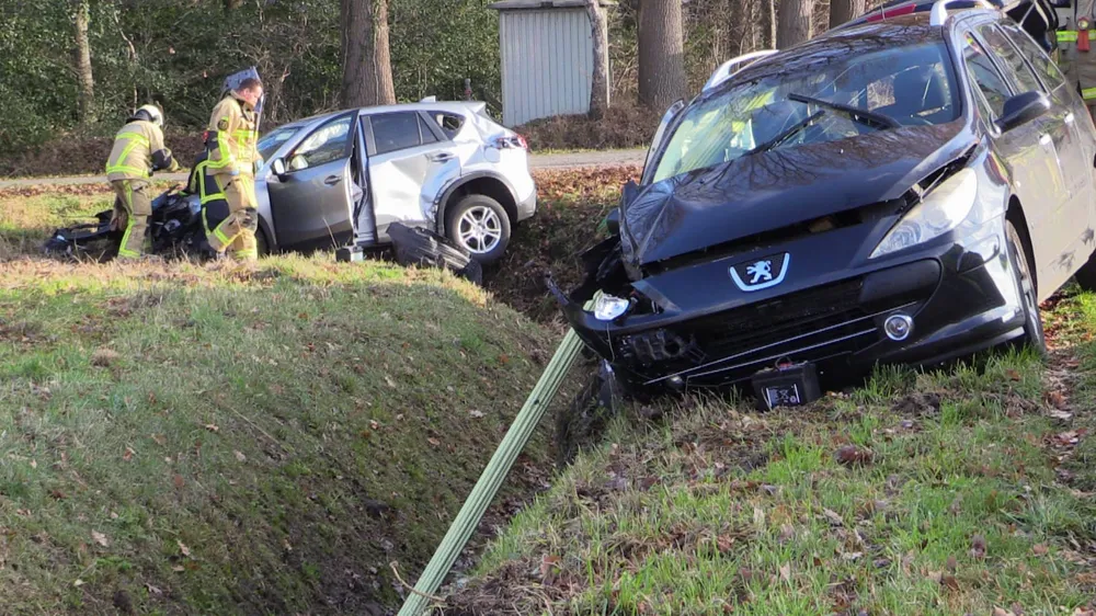 Beide auto's zijn als gevolg van de klap van de weg geraakt. Zeker twee personen zijn gewond geraakt.