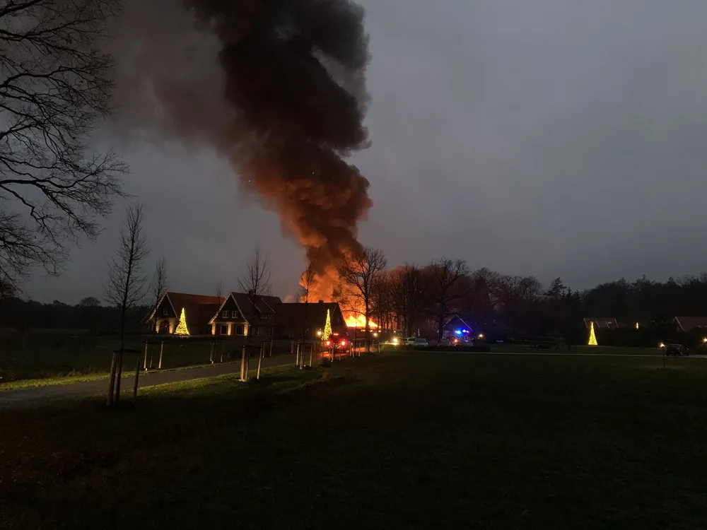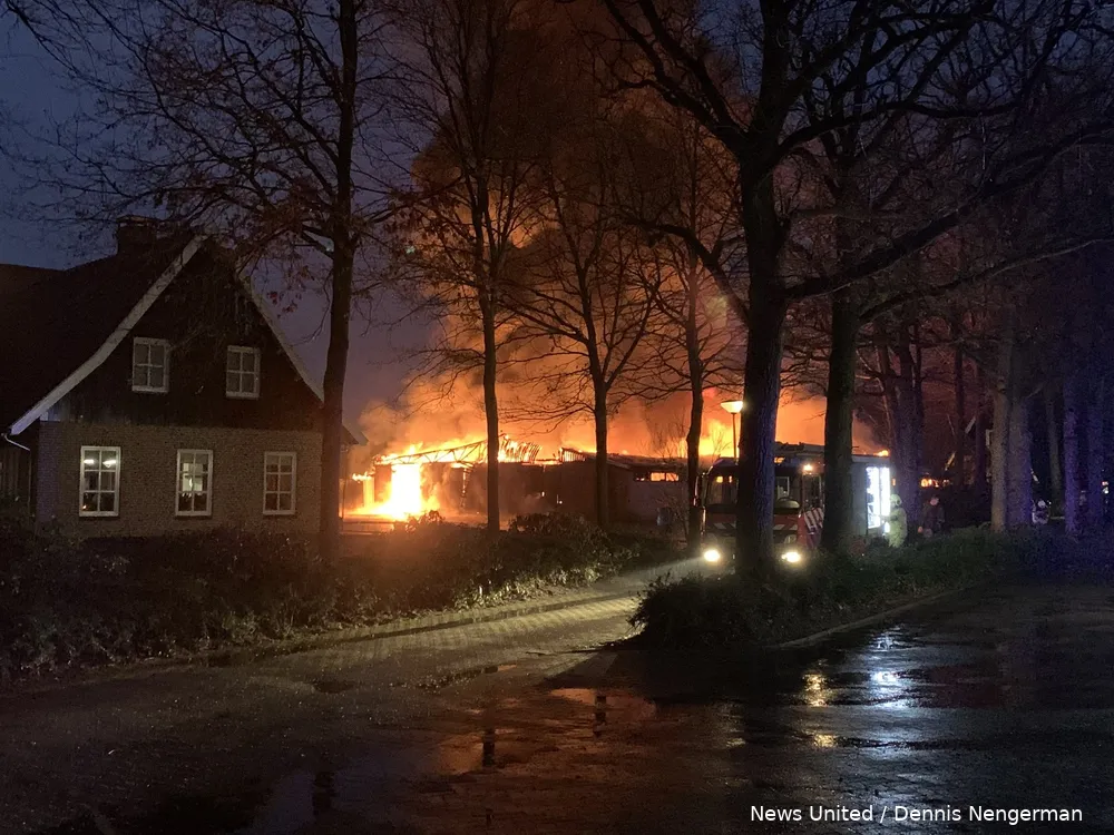 De brandweer is met groot materieel uitgerukt om de brand te blussen in een schuur aan de Oldenzaalsestraat te Losser