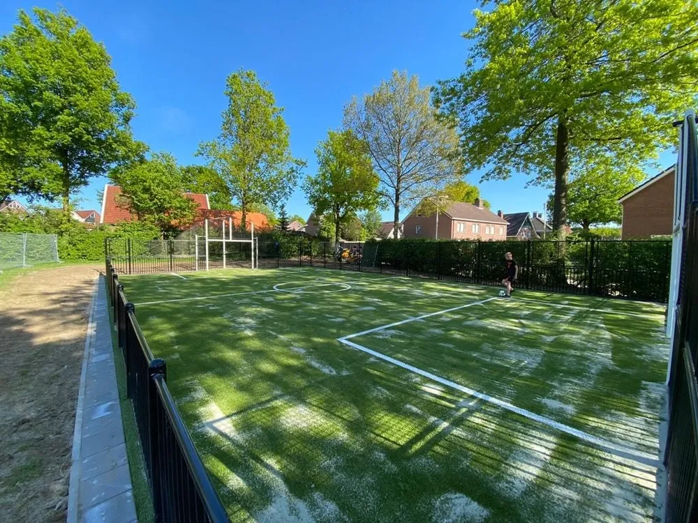 Nu kunnen ze er volop sporten en voetballen, want het nieuwe kunstgrasveld aan Zwaluwstraat is klaar en al in gebruik. "Het kunstgrasveldje was een vurige wens van Nout en Jens en van veel