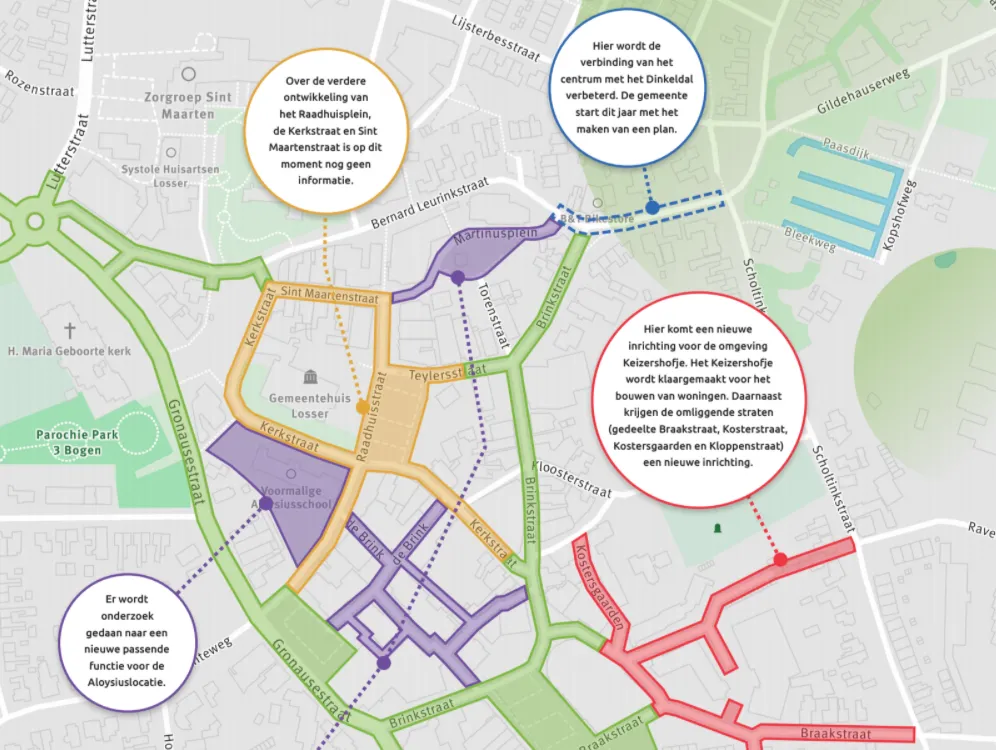 Binnen het overkoepelende Centrumplan Losser vallen ook het Raadhuisplein, de Kerkstraat en Sint Maartenstraat. Over de verdere ontwikkeling van deze onderdelen is op dit moment nog geen informatie.
