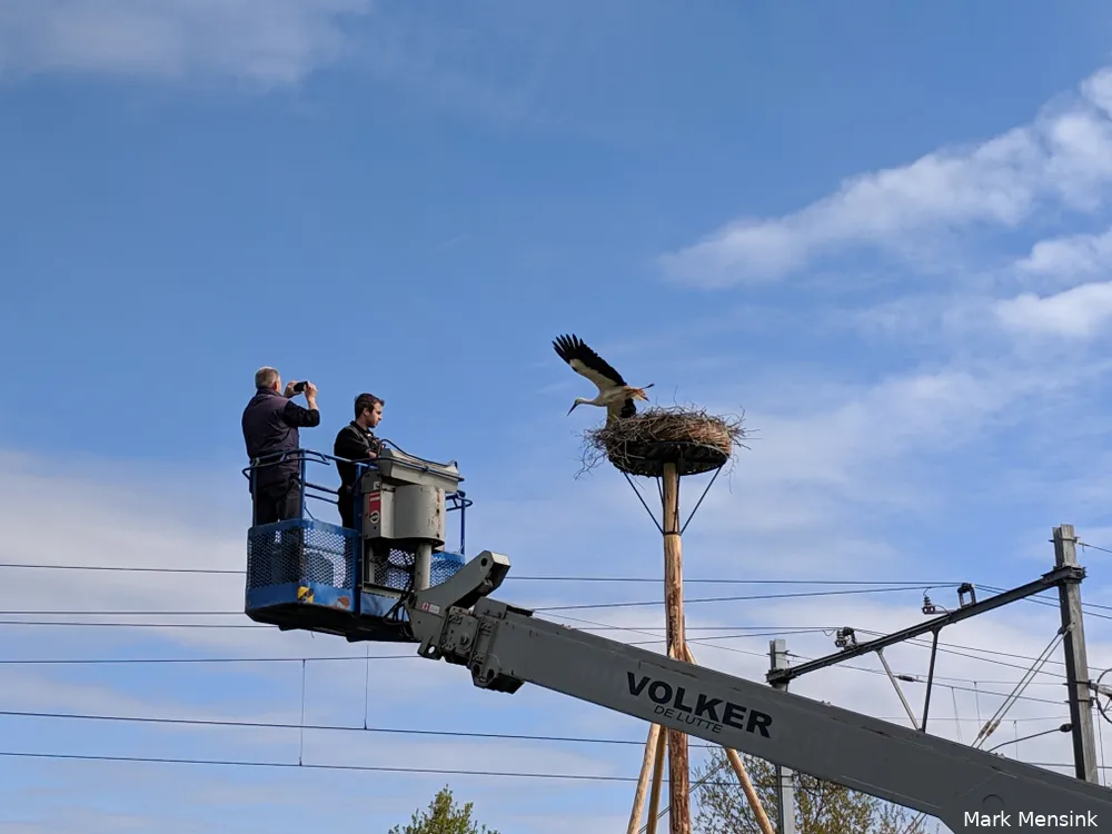 De geredde eieren van het ooievaarsnest in De Lutte waarvan een broedend mannetje werd doodgeschoten, zullen over ongeveer een week uitkomen.